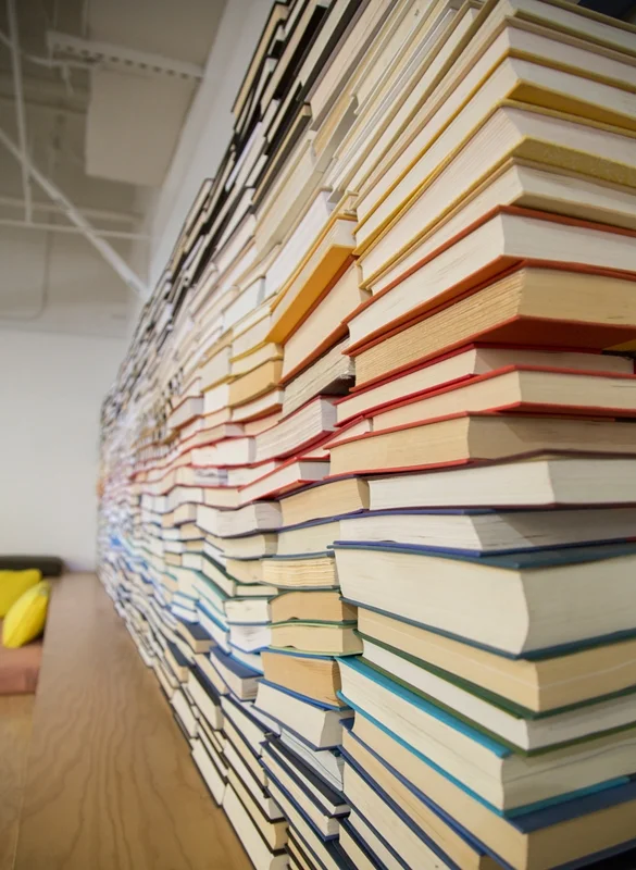 Another frequently donated item is used books which we used to cover a wall and make a statement. We also created an amphitheater style reading area complete with cushions upholstered with vintage blankets. Other vintage items (like globes, radios, and speakers) were used in large groups and collections to create moments of visual interest.